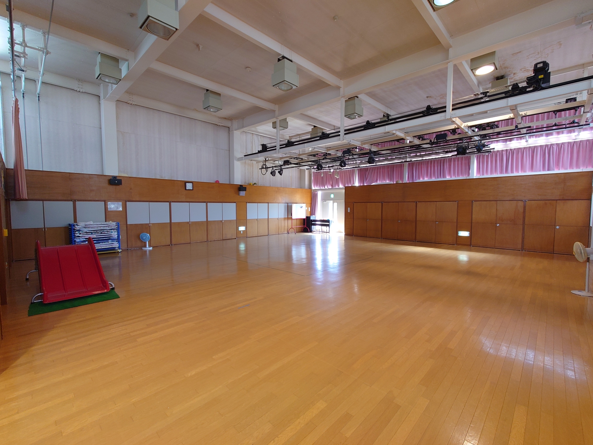入園式、卒園式などの園の大きな行事はすべてここで行われます。朝の会やお帰りの会、スポーツ指導でも使用します。
